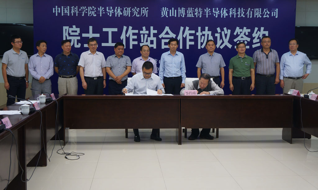2017年9月21日,博藍特集團旗下子公司黃山博藍特半導體科技有限公司與中國科學(xué)院半導體研究所夏建白院士及其研究團隊在黃山隆重舉行院士工作站合作簽約儀式,這也是安徽省成立的首家中科院院士工作站。出席儀式的有中國科學(xué)院半導體研究所夏建白院士、李京波研究員,黃山市徐德書(shū)副市長(cháng)、屯溪區委胡黎明書(shū)記以及博藍特集團董事長(cháng)徐良先生、副總經(jīng)理劉建哲等。